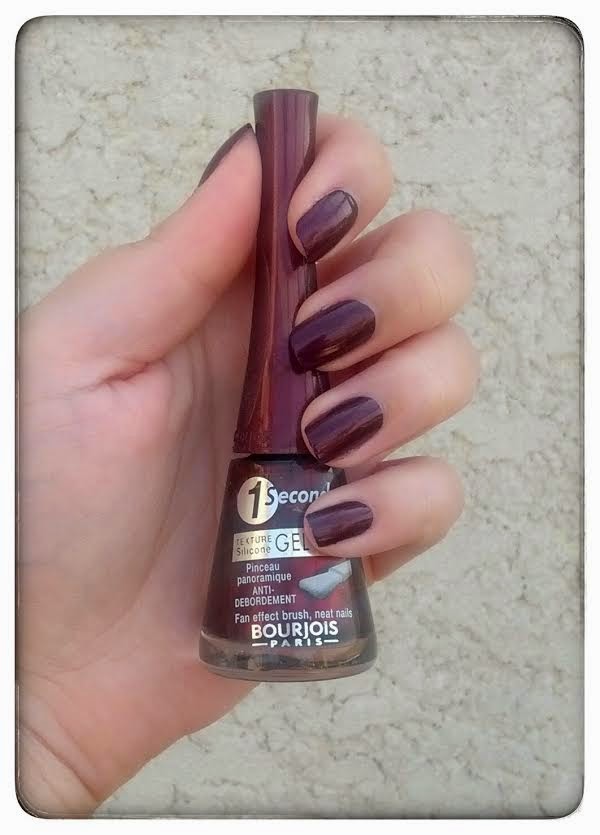 Il a de jolis reflets entre le violet et le bordeaux. La tenue est bonne, ma manucure a tenu quelques jours malgré le ménage et tout ce que j’ai pu lui faire subir. Je vous le conseille je l’ai vite adopté.