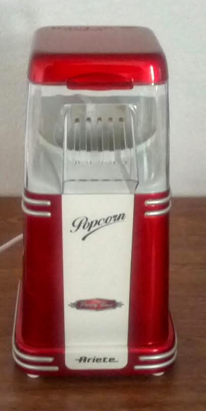 Aujourd’hui je vous parle de la machine à pop corn Ariete Party time. Pour la première fois, en plus d’une photo, je vous ai pris une petite vidéo pour que vous puissiez voir la machine en fonctionnement. Ceci est mon premier essai avec la machine, comme ça le test n’est pas faussé. Ce qui explique l’avalanche de pop corn dans le salon ^__^.