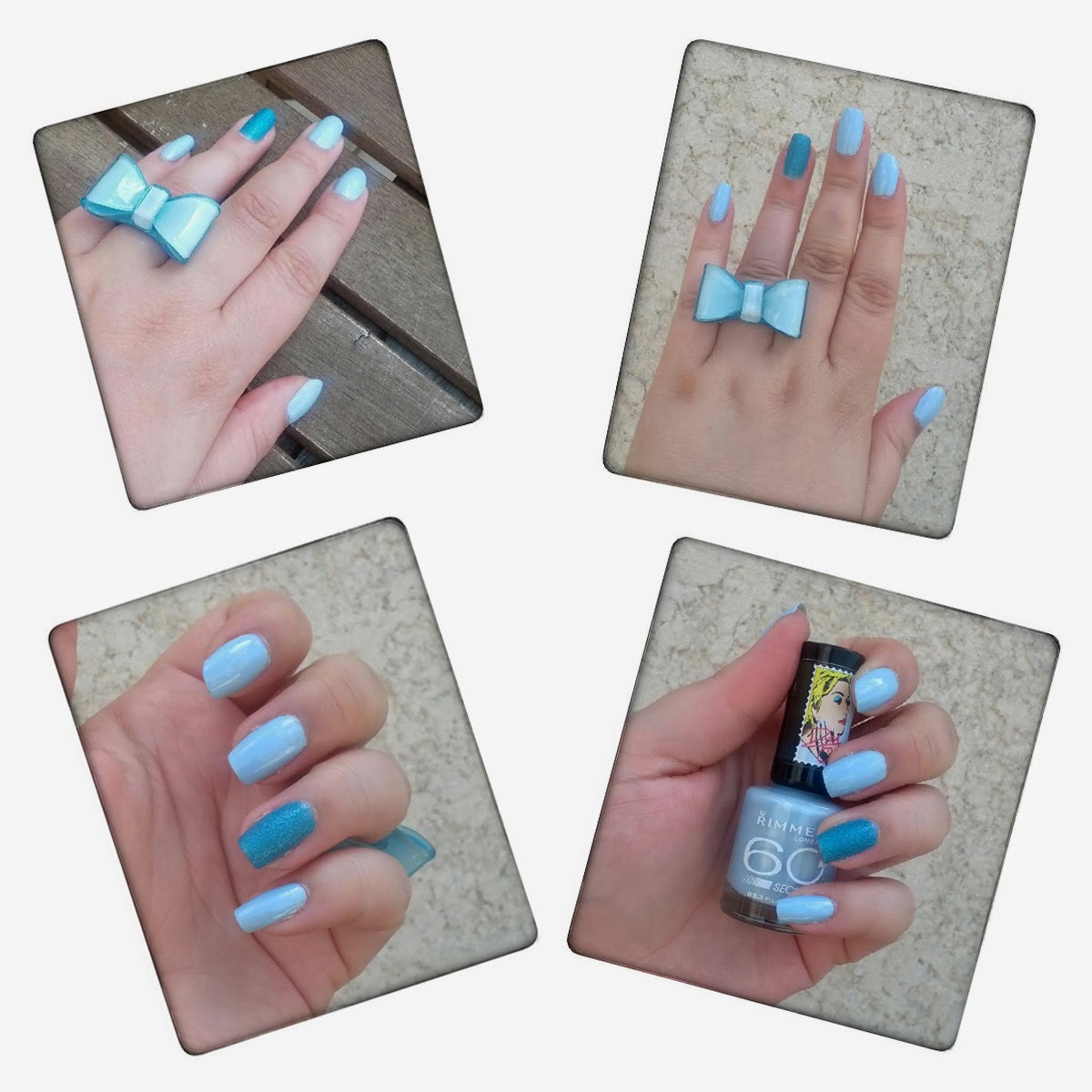 Ce vernis est un bleu pastel un peu nacré, même si le nacré ressort plus dans le flacon que sur les ongles. Je pense que ce vernis va être très sympa à porter tout au long de l’année. Il se pose facilement en deux couches, et sèche rapidement, même si 60 secondes me semble un peu ambitieux.