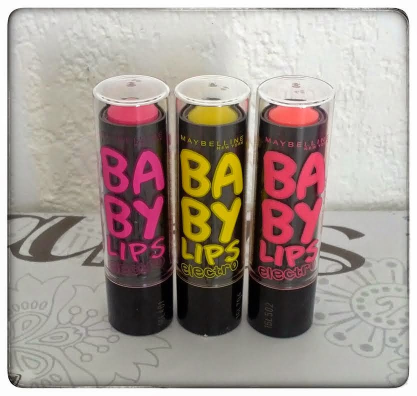 Les Babylips electro existent en 6 teintes : Berry Bomb (violet), Fierce N Tangy (jaune), Minty Sheer (vert), Oh Orange (orange), Pink Shock (rose), et la teinte Strick a rose (rose). Pour ma part, j’ai craqué pour le jaune et les deux teintes roses, comme vous pouvez le voir sur la photo. Mais je pense que cet article sera vite mis à jour avec les nouvelles teintes, dont le violet que je cherche désespérément ^__^.