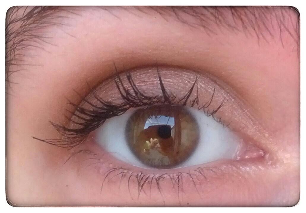 Sachez que j’utilise mes pinceaux et pas l’embout mousse qui est fourni dans la palette. Pour commencer j’applique un fard marron clair mat dans le creux de paupières pour le définir. Puis je mets le 1er fard de la deuxième ligne sur toute ma paupière mobile. Je prends le fard blanc irisé et je le pose dans le coin interne pour ajouter une touche de lumière. Pour le coin externe, je le dessine avec un peu de fard marron irisé bien estompé. Un peu de mascara et voilà.