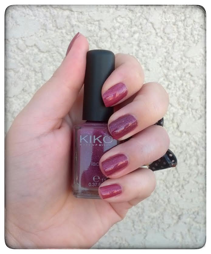 C’est le vernis le plus clair de ma sélection, c’est une sorte de prune clair avec des micro paillettes roses un peu dorées, mais qui parait plus foncé une fois appliqué. Quand je l’ai vu j’ai tout de suite flashé dessus, sa couleur est très joli, et les micro paillettes sont subtiles mais présentent en donnant de jolis reflets à sa manucure. Comme tous les vernis Kiko, il est pas cher, opaque en deux couches et à une bonne tenue, que demander de plus lol.