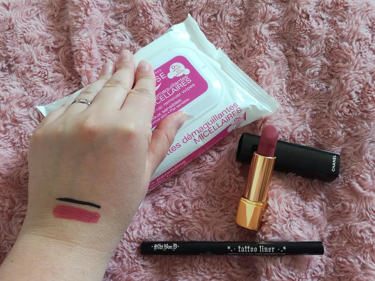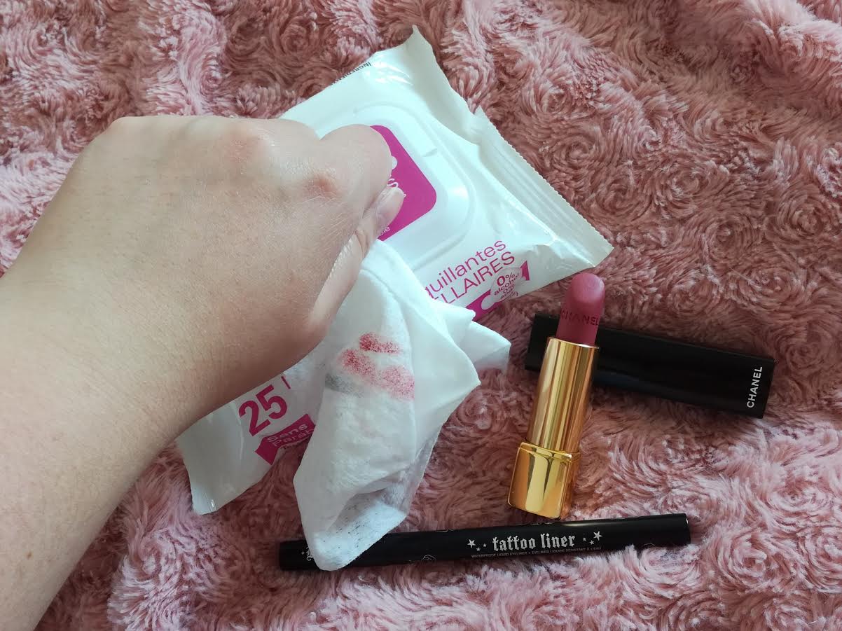 Le démaquillage est efficace et rapide, même si je vous conseille de laisser quelques secondes la lingette sur vos yeux pour dissoudre en douceur le mascara et le liner. Mais comme vous pouvez le voir, même le Tattoo Liner de Kat Von D ne résiste pas à la lingette, sans que j’ai eu à frotter ma peau comme une dingue.