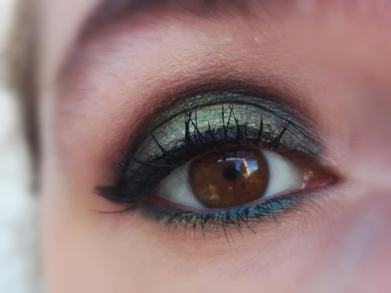 Puis avec un pinceau propre et humidifié, j’ai appliqué le fard Clover au centre de ma paupière mobile, puis j’ai un peu flouté le tout et ré intensifié un peu la couleur. J’ai ensuite déposé un peu du fard Shooting Star en coin interne. Et un peu de fard Unicorn en tapotant avec mon doigt sur la paupière mobile.