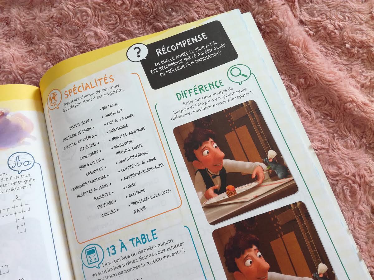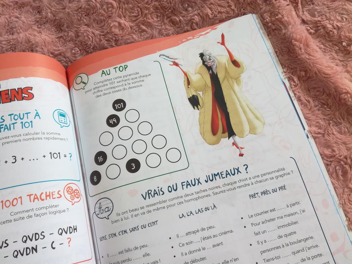 Alors celui-ci, je pense que c’est celui que vous attendiez le plus dans mes coups de coeur, vu que depuis que je l’ai posté sur Instagram, vous m’avez posé plusieurs questions. C’est un cahier de vacances, comme pour les enfants, mais destiné aux adultes. Dedans on révise mathématiques, anglais, français, géographie,… à travers des petits jeux tous sur le thème de Disney bien sûr, et on n’y trouve également des petits Quizz et questions sur les films et les personnages. Et chaque double page a pour thème un film. Et je peux vous dire que certains exercices sont corsés (gare à la surchauffe de neurones ^__^).