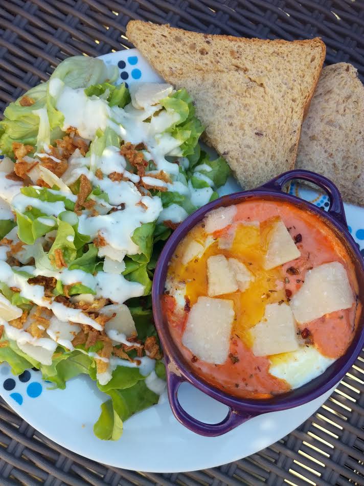 – Servez chaud avec une petite salade et des toasts légèrement grillés (Pour plus de gourmandise ajoutez quelques copeaux de parmesan sur l’œuf ou un peu de basilic frais).