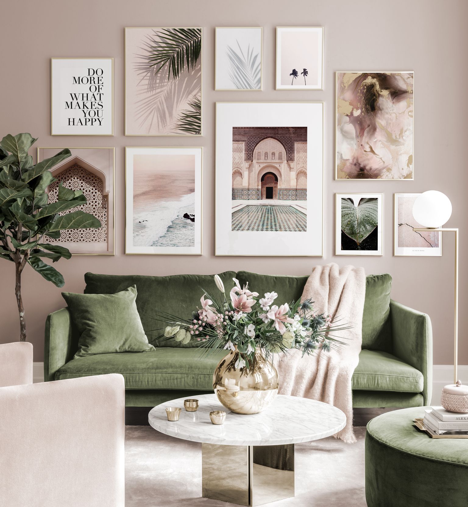 Pour notre choix, nous avons d’abord parcouru leur galerie d’inspiration afin de trouver un agencement de cadres qui nous correspond. Voici quelques exemples :
